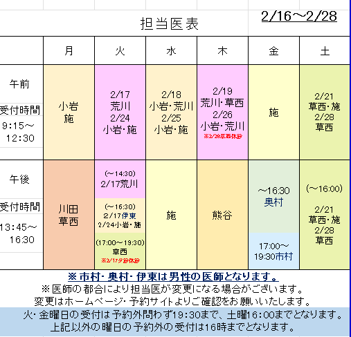 変更はホームページまたは予約サイトよりご確認をお願いします。