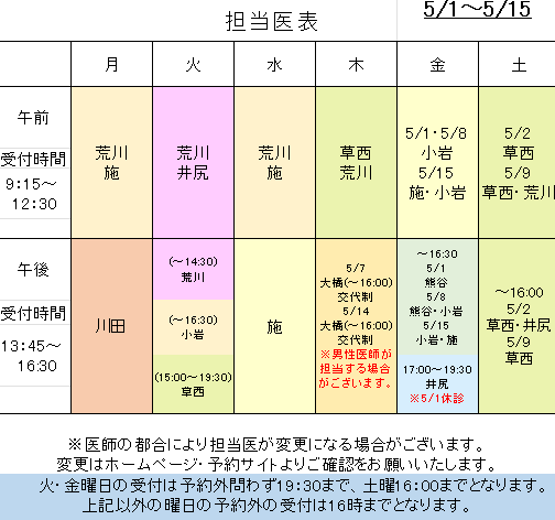 ※医師の都合により担当医が変更になる場合がございます。